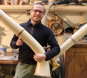 Sandro Faïta : Musicien professionnel et Lauréat de plusieurs prix internationaux en cor d’harmonie, Sandro Faïta a choisi d’associer sa connaissance et sa maîtrise des instruments à vents (ou à embouchures, famiIIe des “cuivres”) avec sa passion du bois pour créer et fabriquer ses cors des AIpes.